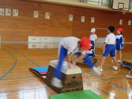 跳び箱の時間最終日。今までがんばってきた技を披露しました。