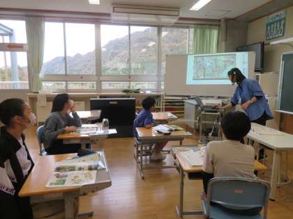 春に種を蒔いて育ててきたヘチマ。夏に大きく成長し、大きな実となり種ができてきました。四季を通じてヘチマの観察を行ってきた4年生です。これから寒くなっていくときの様子を想像し、映像で確かめて話し合いました。