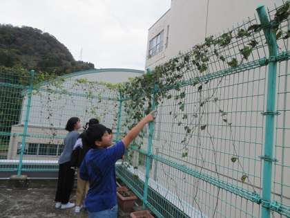 そして、いざ観察へ。残念ながら猿が大きくなったヘチマを全部取って行ってしまいました。理科としての学習のまとめにはなりませんでしたが、違った意味で学習をした時間になりました。