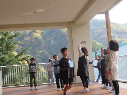 子供たちは、鏡を使い天井や校外の場所に光を映し出しながら、歓声を上げて実験しました。また、段ボールを的にして光を集め重ねることにも興味がいっぱいでした。