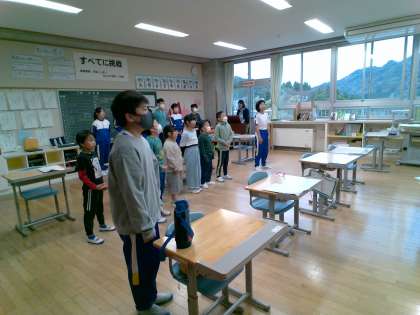 今日は、2年生と6年生がコラボレーションしました。素敵な声で「虹」を歌っていました。