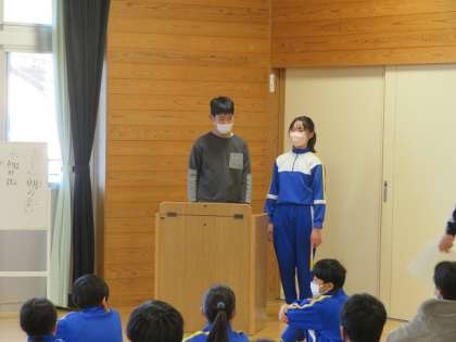 今日の朝の集いは、朝の歌・伝達受賞を行いました。