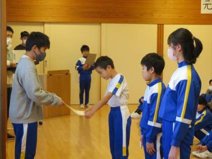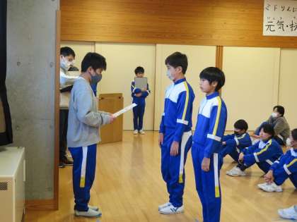 元気健康委員会委員長より、各受賞者に賞状を渡し全校児童から大きな拍手をもらいました。