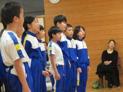 3年生は、「ありがとう・がんばって・わすれないで」の気持ちを大切にしたいから、1きれいな声 2 まちがえない 3 えがお 4 大きく 5 のりのりで歌おうと考えました。