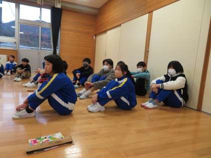 下学年の思いを受け止め、各学年の歌を真剣に聴いています。近づいてくる卒業の日を思い描きながら。