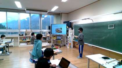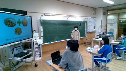 Unit6「My original curry and rice」で自分の考えたカレーをプレゼンテーションしました。産地や家庭科で学習した何色に分類されるか英語で紹介しました。相手に聞こえる声で発表していました。
