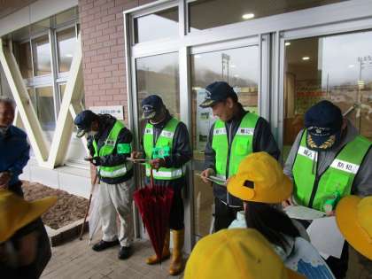 クマの出没が相次いだこの秋、徒歩で通学している児童生徒の安全確保のため、保護者の皆様や防犯組合、安全パトロール隊の方に登下校の見守りをしていただきました。
