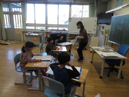 1年生になって初めて行う書初。今日の書写の時間から、書初の練習を始めました。