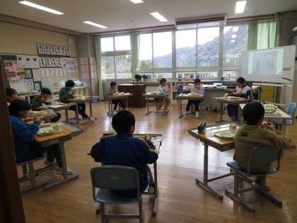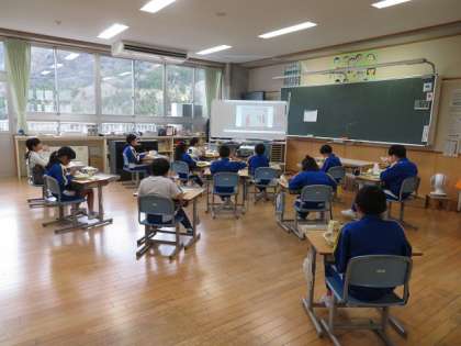 今日は、給食時に「みずいろのマフラー」という人権に関わる物語を読み、みんなで考えました。