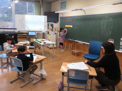 今までの学習をもとにして活発な話合いが進んでいきました。自分の考えを具体物や図を使いながら、自分の言葉で友達に伝えていました。友達の考えを聴いて、自分の学習に生かそうとする子供たちの姿に感心しました。