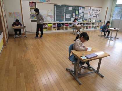 1のだんでは、全員があっという間に書き上げました。「こんなの簡単、楽勝」と嬉しそうな言葉が飛び出しましたが、6のだんや9のだんではつぶやきも出ず、真剣にプリントに向かう姿が見られました。みんながんばっています。