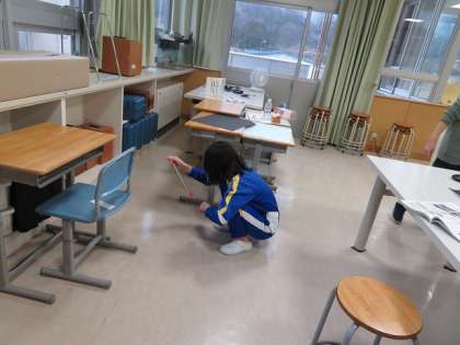 「もののあたたまりかた」の学習を進めてきました。今日は、空気のあたたまり方について、教室の測定場所を決めて気温を測る実験を行いました。