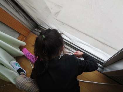まず、感心したのは清掃時間が始まる前から一人で黙々と多目的室のモップがけをする子。清掃の時間が始まる頃には、一人でゴミやほこりを集めていました。そこへ来た低学年の子が、日頃できない道具収納場所をきれいにし始めました。