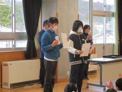 その後、スキー教室に向けての体調管理や持ち物準備について、養護教諭と体育主任から話をしました。