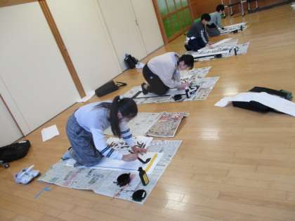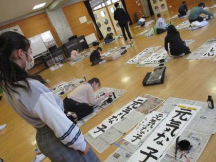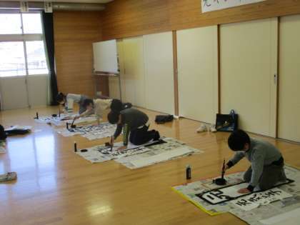 4年生が取り組む書初の言葉は「元気な子」。3年生の頃よりも、字形で気を付けることが増えています。大会本番で、2枚にじっくりと取り組み、どちらの作品のできがよいかを見極める冷静なまなざしがすてきでした。