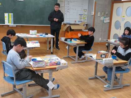 磁石セットの磁石を使って、気付いてことをノートにまとめていきます。どの子も真剣に磁石の不思議さやおもしろさに夢中になっています。