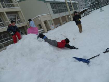 2年生は、雪を使って十分に遊びを楽しみました。