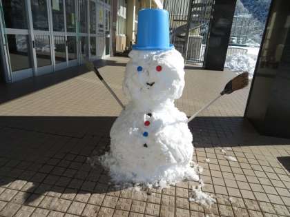登校した子供たちを迎えてくれた雪だるま。中学生が昨日つくってくれたものだそうです。ほっこりした温かい気持ちになりました。