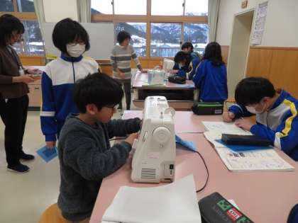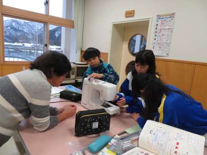 わくわく会員さん1名の協力を得て、子供たちがミシンの使い方を学びました。