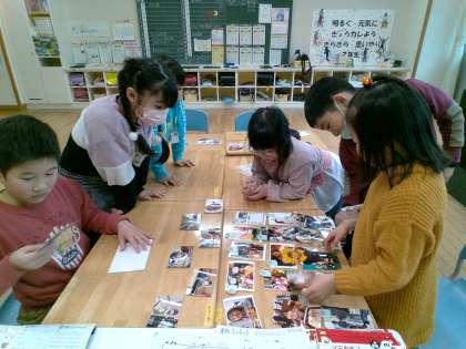 小さい頃の写真を持ち寄り、みんなで見合いました。