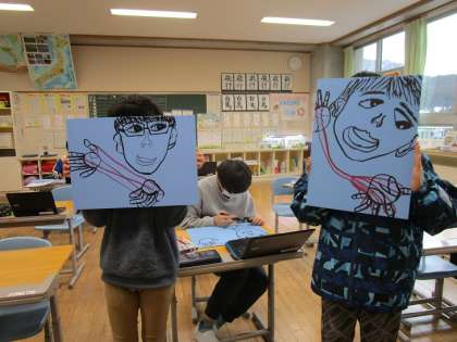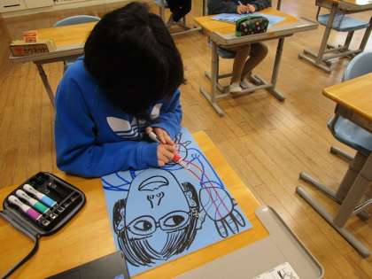 木版画「あやとりをするぼく・わたし」に取り組んでいます。