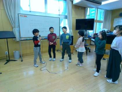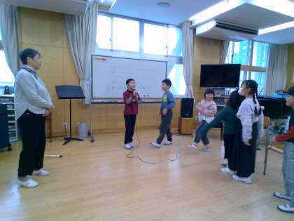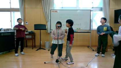 まだ大勢の前で歌ったことのないメンバーがマイクを使って「はるのまきば」を歌います。