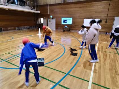 3・4年生は、ブレイクダンスに挑戦中です。お互いに教え合いながら練習しています。