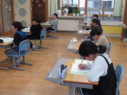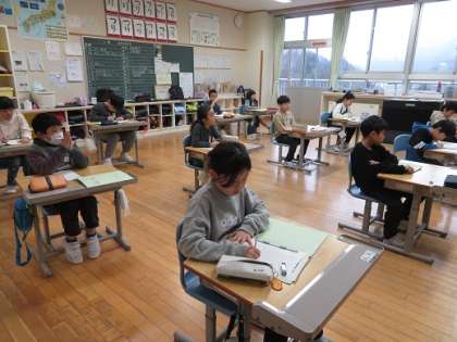 今日は、林業の仕事に関わるゲストティーチャーを招いて話を聞きました。仕事の内容や木に関すること、野生動物等の質問が出ました。