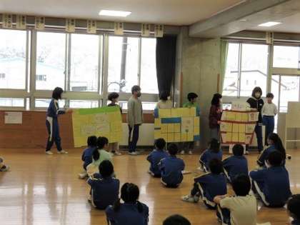 今日の朝のつどいは、給食週間にちなんで日頃お世話になっている、栄養士さんや調理員さんへの感謝のメッセージカードの紹介がありました。