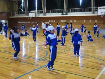 2月21日は下学年、22日は上学年のチャレンジ縄跳び個人の部を行うため、一人一人が目当てをもって短縄跳びの練習を始めています。