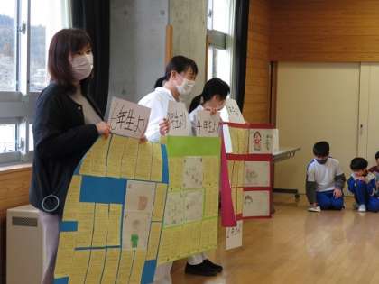 メッセージを渡した後、栄養士さんから「3月に揚げパンを作ってもらう日があります。」という言葉に大喜びの碧っ子でした。