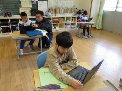 学習参観に向けての資料づくりに余念がない3年生。今まで調べてきたことを分かりやすく伝えようと、がんばっています。