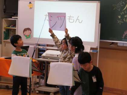学習したことをクイズにして発表をしました。また、みんなでできるようになった大縄での8の字跳びでは、ますますパワーアップした跳び方を見てもらうことができました。この1年間の大きな成長を、堂々と発表しました。