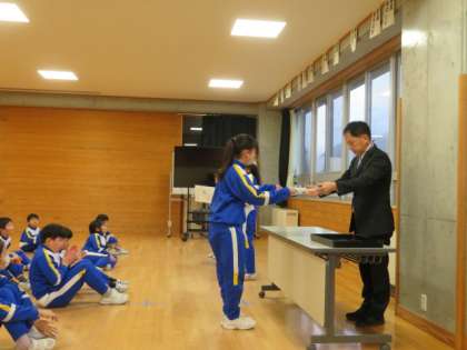 今日の朝の集いでは、伝達受賞と6年生からのお知らせがありました。