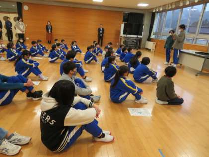 また、6年生からのお知らせがあり、全員で「ふるさと」を歌って朝のつどいを終えました。