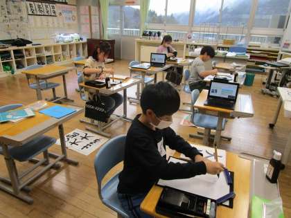 2月21日(水)4年生 書写 公開日 2024/02/21 更新日 2024/02/21 4年生の部屋 4年生のまとめとして「大地」という文字に挑戦しています。 手本と試し書きを写真に撮り、自分の課題を入力してから練習に取り組みます。各自の課題に合わせて、練習の仕方も自分で考えて取り組めるようになりつつあります。