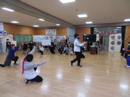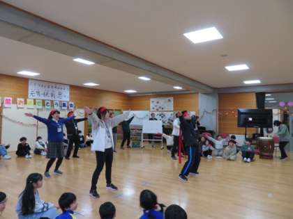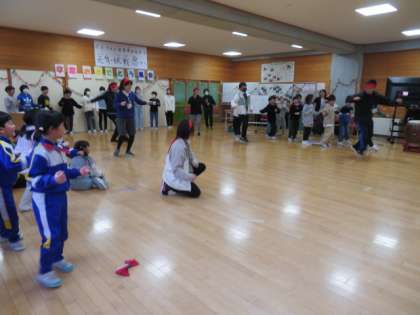 かっこよく決まったところから、急にダンスが始まりました。「Bling-Bang-Bang-Born」の曲に合わせて踊ります。楽しい雰囲気に、子供たちも一緒に踊って盛り上げてくれました。