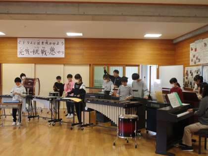 このような上学年の合奏を間近で見たり聴いたりした下学年の子供たちは、憧れの思いをもち、自分たちの力にしていくことと思います。