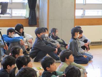 4・5年生は、難しい曲に挑戦しました。「シルクロードのテーマ」です。もうすぐ卒業する6年生への思いを込めて美しく演奏しました。それを聴いている6年生の表情がとても素敵でした。
