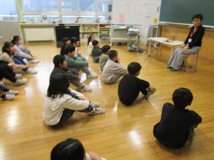 「読み聞かせ」ではなく「読み語り」です。ボランティアの方は、子供たちの一人一人の顔を見ながら、日本や外国のお話、民話、実際に体験した子供の頃の話等を語ってくださいます。このような機会が少なくなっている現在、本当にありがたい経験をさせてもらっていると感じます。