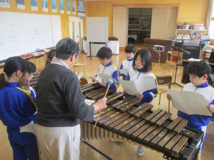 今日の3年生の音楽はカラオケ大会と、新曲の合奏に挑戦しました。カラオケ大会は「チャレンジ」という歌を歌詞を見ずに全員で歌いきるというものでした。合奏は「パフ」という曲に挑戦し、その場で楽譜を受け取り、木琴、鉄琴、オルガンに分かれて演奏しました。