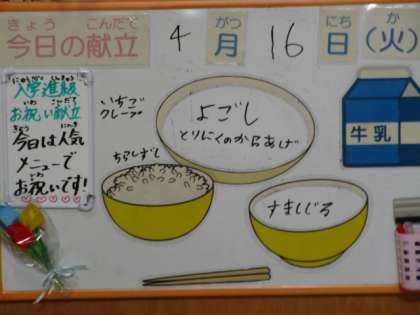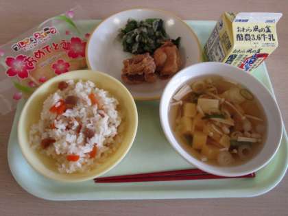 今日は、入学・進級お祝い献立です。