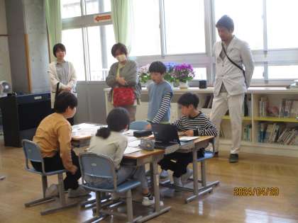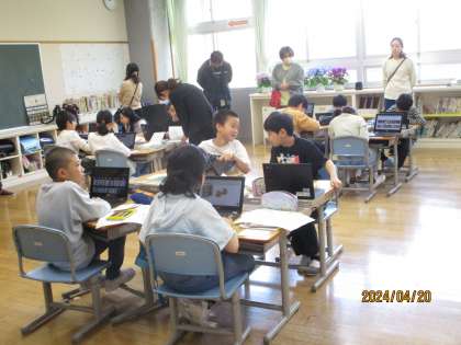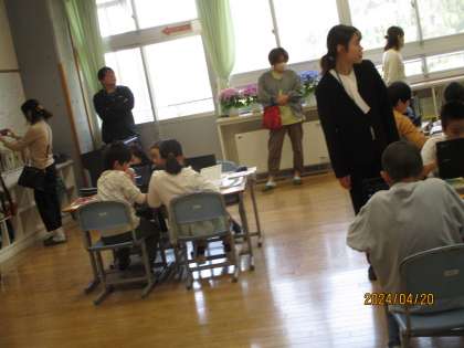 社会科で都道府県についての学習を始めた4年生。都道府県の特産品や県庁所在地について、調べたことをもとにカルタ作りをしました。グループで友達と協力しながら活動したり発表したりする「上学年としてより頼もしくなった姿」を家族に見せることができました。