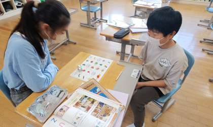 5月2日(木) 5年生 外国語 公開日 2024/05/02 更新日 2024/05/02 5年生の部屋 今日は「I like」と「What 〇〇 do you like?」の表現を使って相手の好きなものを尋ねました。 ウォーミングアップに、すごろくをしました。止まったマスに描かれた食べ物が好きかどうかを英語で答えます。