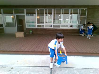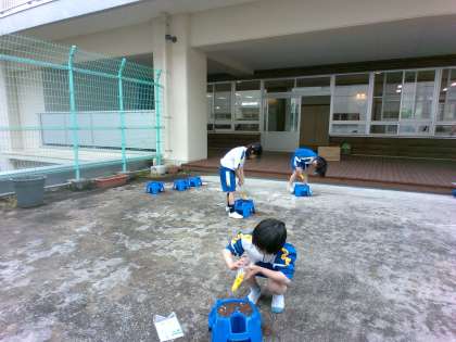 生活科でアサガオの種の観察した後、植木鉢に植えました。