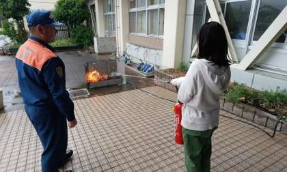 式のあと、煙の中を移動する体験をしたり、消火器の使い方を教わったりしました。