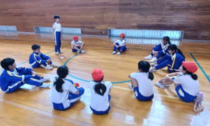 今日は体育大会の全員リレーに向けて4・5・6年生で練習をしました。練習から次回気を付けたいところを話し合いました。