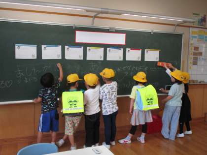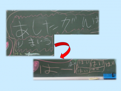 下校前に、明日の意気込みを黒板に書きました。黒板に書かれていることを見るだけでも気合いが伝わってきます。明日は全力でがんばってほしいです。
