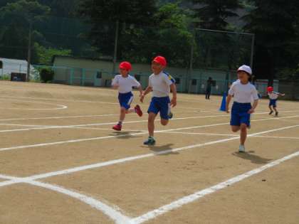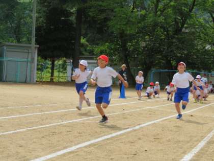 個人走で名前をコールされた子供たちは、手を挙げ大きな声で返事をします。