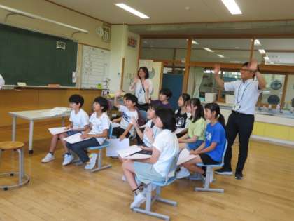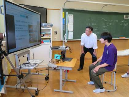 次に、本校の学校紹介では、学校の周りの自然や学校生活等についてのプレゼンテーションを行いました。